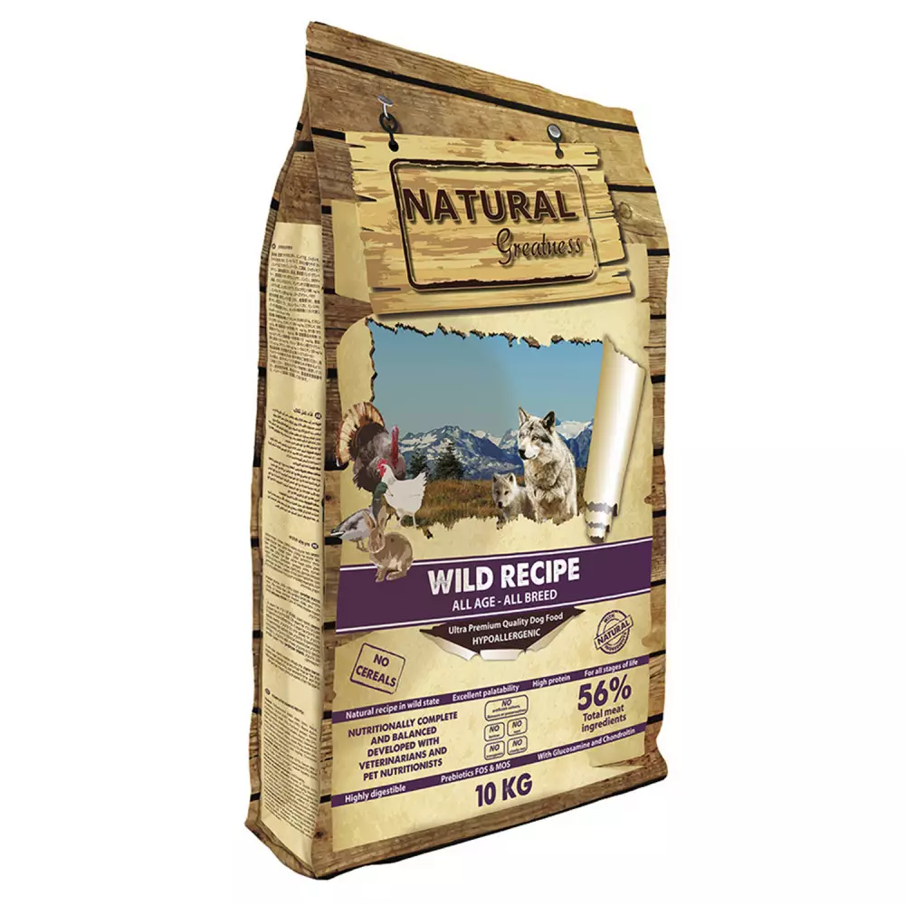 Receta sin cereales hipoalergénica de pato, pavo, pollo y conejo apta para todas las razas y edades, tanto cachorros como adultos. Contiene altos porcentajes cárnicos que ayudan a mantener la energía y la masa muscular, por lo que es una buena opción para perros con una alta actividad diaria como perros deportivos o de trabajo. Sin lactosa, colorantes, saborizantes ni conservantes artificiales. Incluye condroprotectores y prebióticos FOS y MOS.