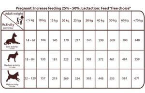 Cantidades diarias orientativas para perro adulto: